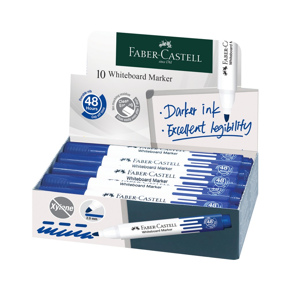 Faber Castell Refillable Whiteboard Marker W20 Bullet – Box of 10 – Blue